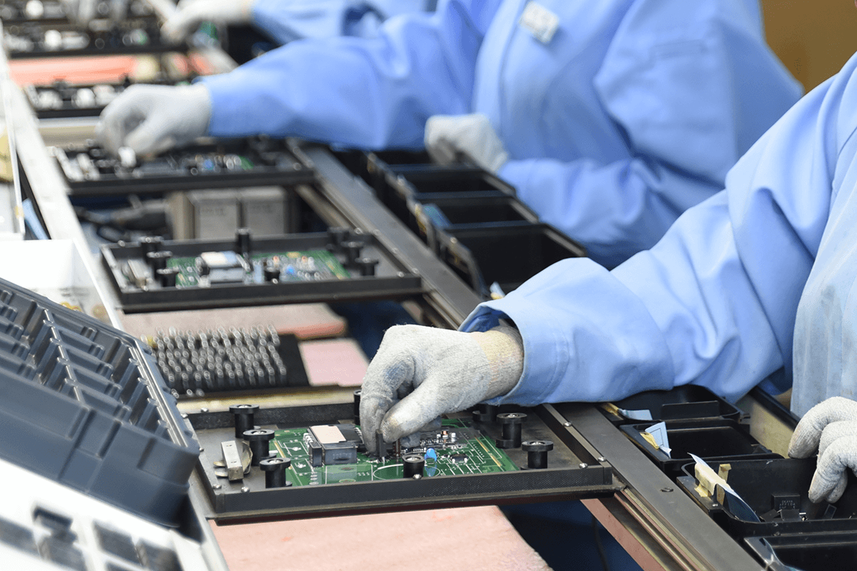 当社では創業以来プリント基板の実装から組立を主軸としてモノづくりに邁進してまいりました。現在では業務内容を表面実装から完成品組立までに拡大し、一貫生産体制を確立しております。