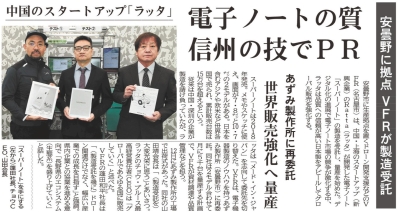 「競争激化する「電子ノート」 市場 安曇野市で量産し販売強化へ」信濃毎日新聞(2025.11.13)